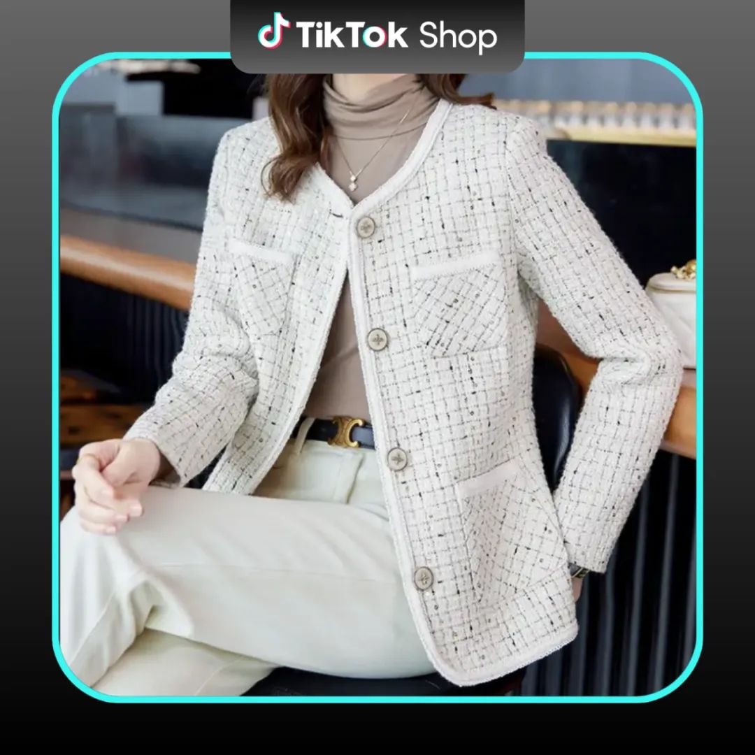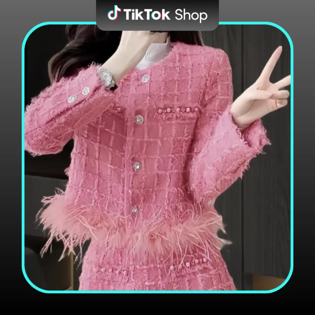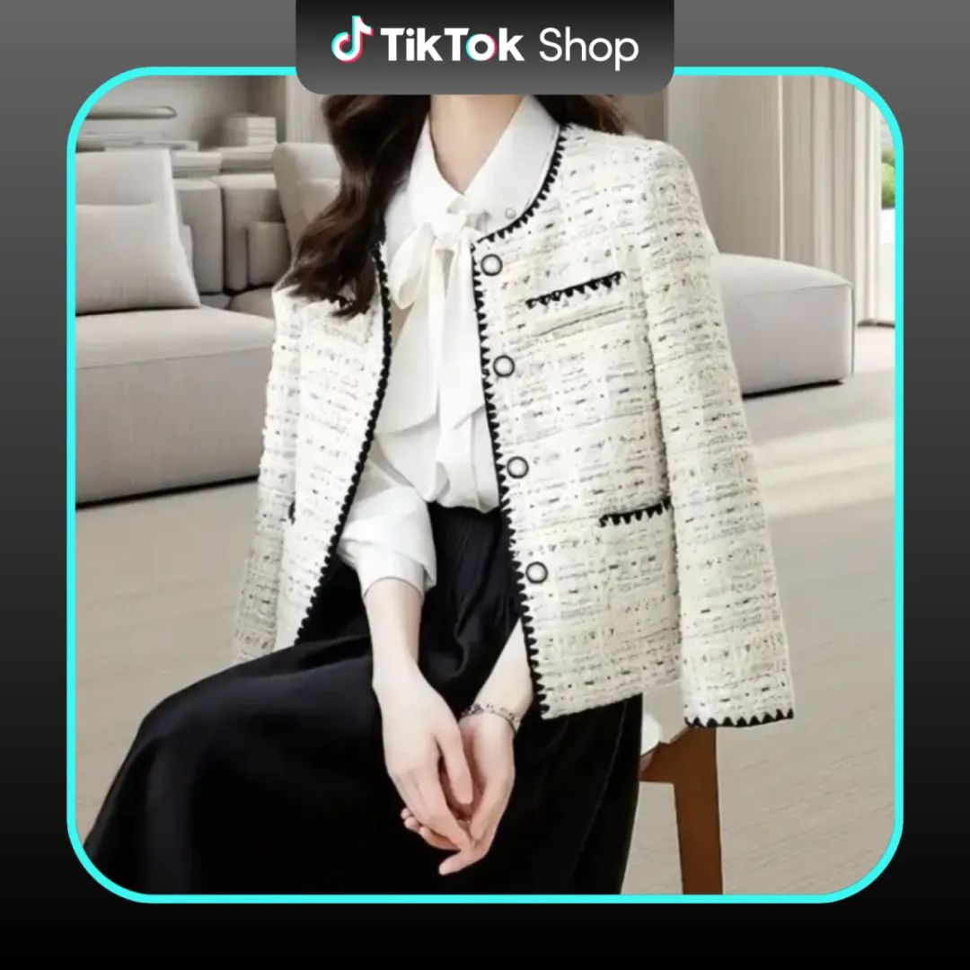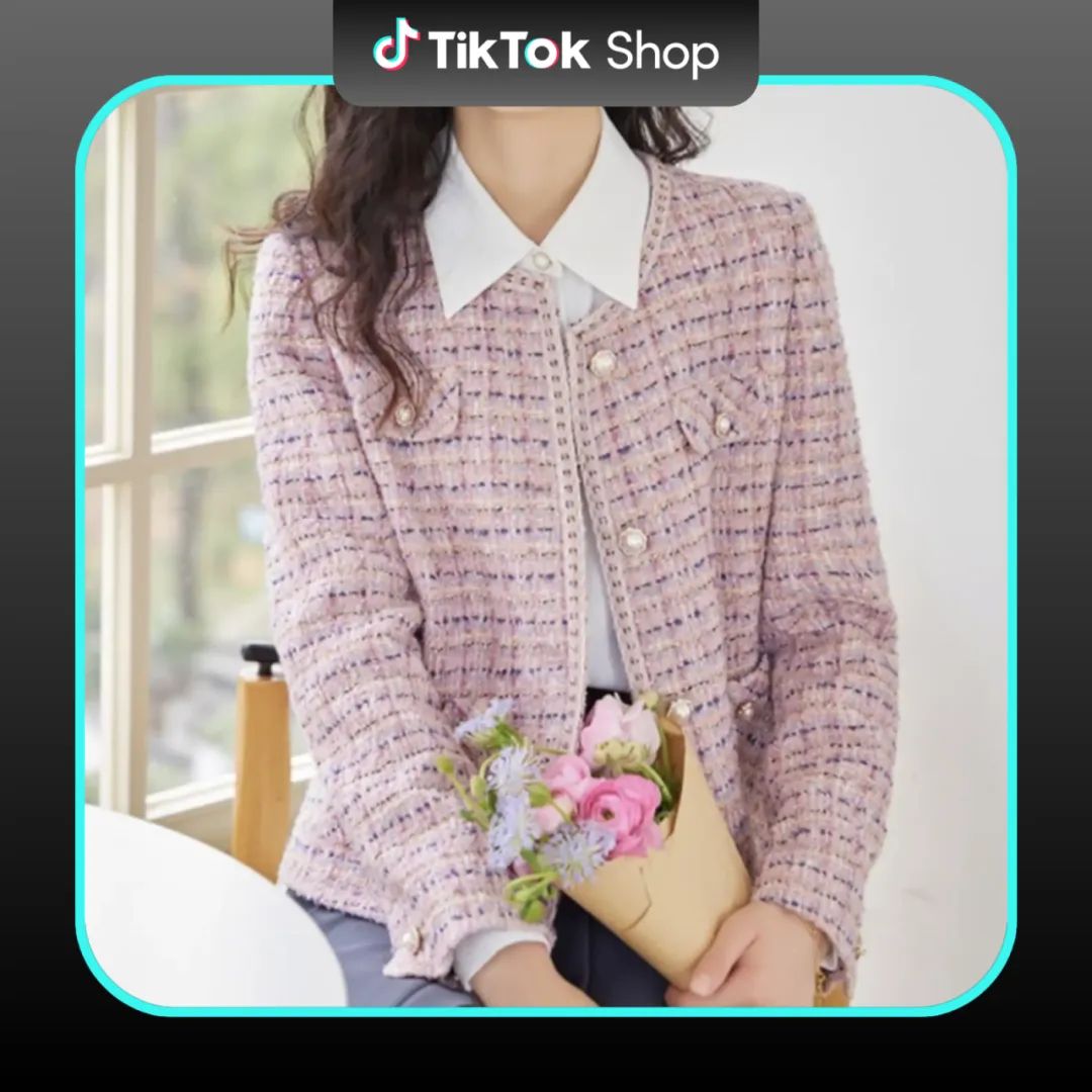 小香风套装:粗花呢面料+金属扣,强调“贵气感”。