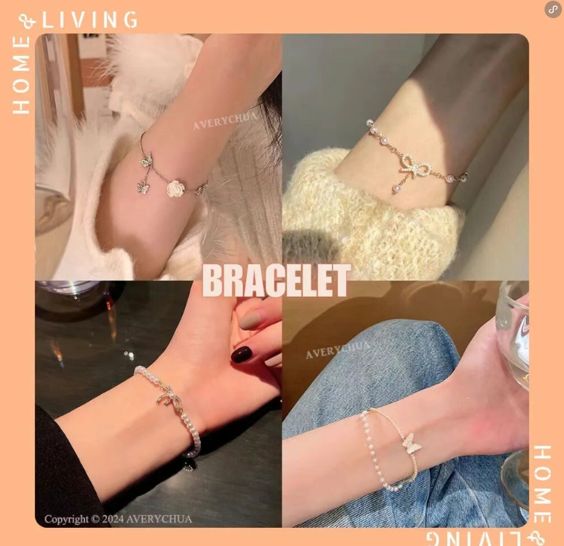 Gelang Bracelet Elegant Butterfly  Rama-rama Elegan Pearl Sanrio Chain Bracelet Bangles Wrist Chain