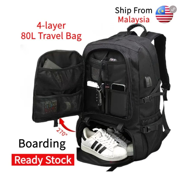 Ready Stock 50-80L Travel Bagpack man Expandable Sports backpack 17/18 inch laptop Waterproof backpack with shoes compartment 旅行背包 大容量