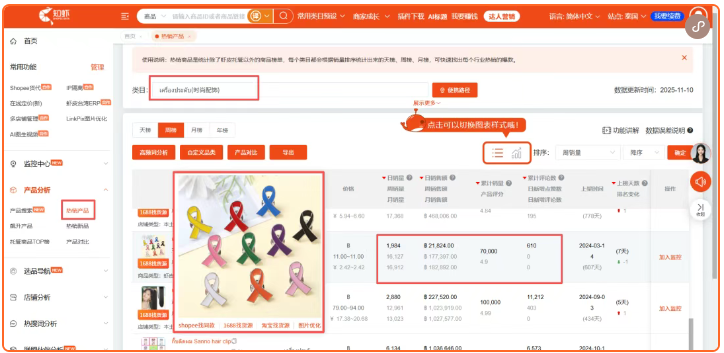 在多个站点中,汽车吸水抹布成为典型爆款,在泰国站点,其日销量高达 35,001 件,销售额达 210,006泰铢。