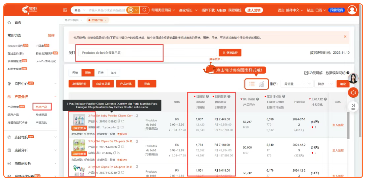 东南亚的年轻父母群体消费力持续提升,他们追求产品的安全性、便利性与可爱设计感,比如近期热销的安抚奶嘴防掉链,在巴西站点日销量高达 1,867 件。