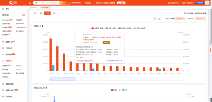 在数据深度上,知虾独家提供 “店铺成长周期” 分析,能还原竞品从 0 到日销 100 单的运营路径,包括广告投放节点、平台活动参与节奏等关键数据,这类深度信息在虾多拉系统中完全空白。