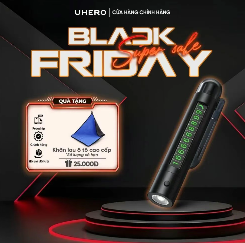 Búa thoát hiểm ô tô 4 in1 Chính Hãng UHERO hỗ trợ thoát hiểm kèm bảng số điện thoại BTH