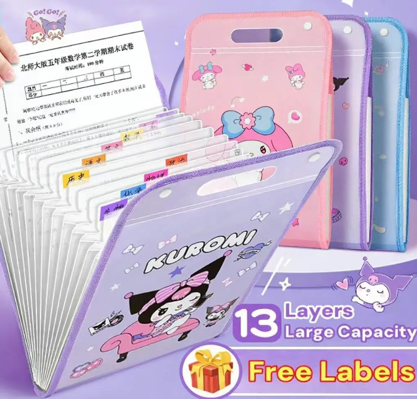 13-Layer Cartoon File Organizer Handle Folder Test Paper Document Storage Portable File Folder Waterproof
